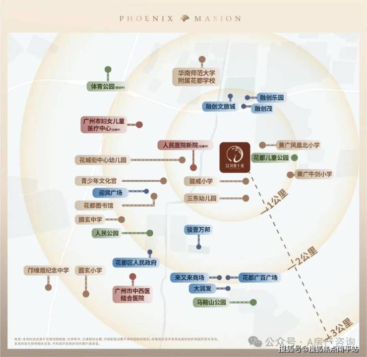 ▪区府腹地:花都传统富人区,中心地段寸土寸金,约2km内集聚花都最好的商圈、老牌名校、医疗资源、市政资源等;