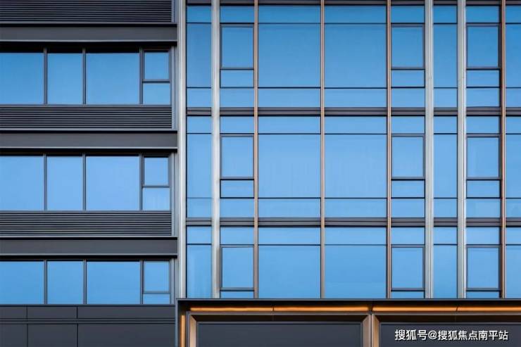 银灰色氟碳铝板+浅蓝灰玻璃,辅以香槟色铝板、香槟翠石材点缀,这种建筑的美感十分出众,颜值在线。