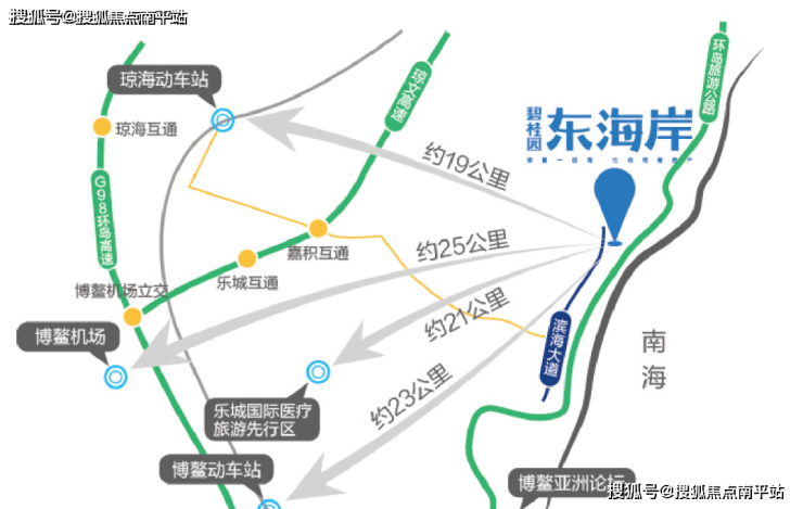 碧桂园东海岸位处自贸港东部组团交通枢纽核心地段,坐拥海南G98环岛高速、环岛高铁、环岛旅游公路3大环岛路线,琼海互通、嘉积互通、乐琼互通3大互通出口,琼海站、博鳌站2大环岛动车站,博鳌机场、美兰机场、凤凰机场3大机场环绕,周边近享滨海大道、琼海大道、海榆(东线)等醇熟交通路网,畅享自贸港全维立体便捷交通。