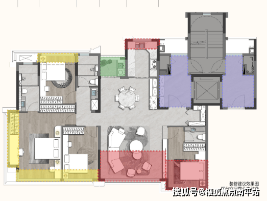 但是功能空间的规划,却已经超越了很多大平层。这也得益于,对空间的深度把握。