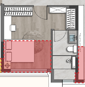 如果你愿意,你甚至可以把床尾的飘窗完全让出来,这样主卧可以获得一个巨长的L型采光面,真的爽。