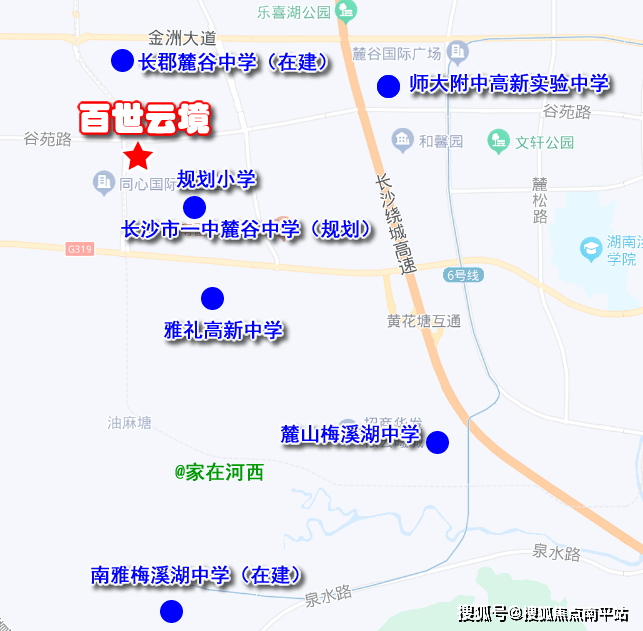项目自建一座幼儿园,一路之隔将建一所公办小学;周边分布着师大附中高新实验中学、长郡麓谷中学(在建)、长沙市一中麓谷中学(规划)等名校品牌初中。