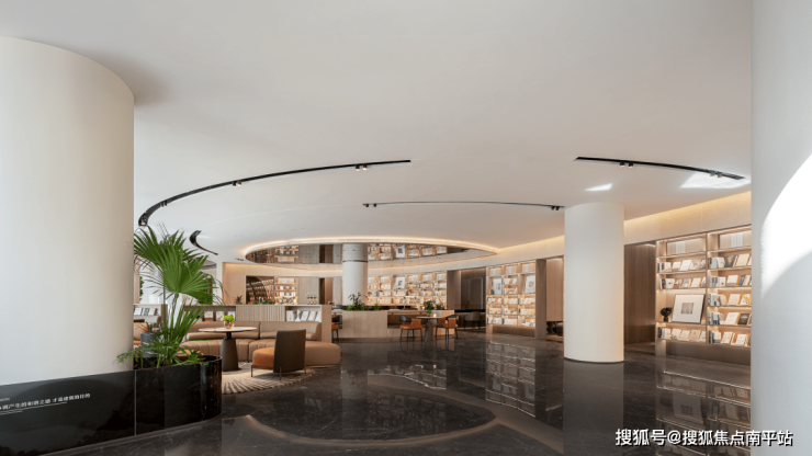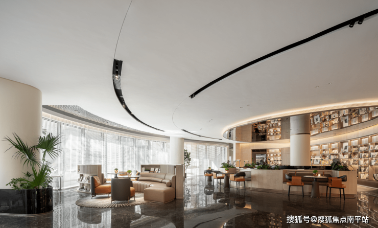水流徐徐则气聚。围合、交流、共聚.....整个空间萦绕水的聚合,营造流动开放包容的气息。这里不仅是接待访客的营销中心,更是心灵的交流、栖息之地。