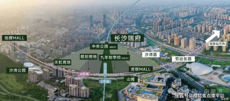项目位于雨花区劳动东路与沙湾路交汇处,出小区便是地铁2号线和4号线换乘站沙湾公园站,街对面便是沙湾公园,一路之隔是双大型商业——吉联mall和山姆会员店,南面是湖南省体育馆。