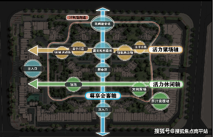 与此同时,项目在各轴线中,融入八大景观功能模块。