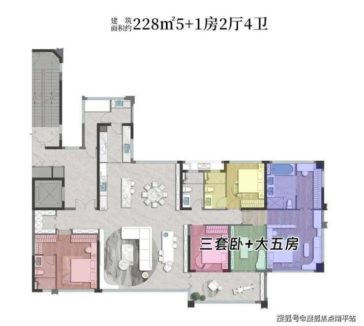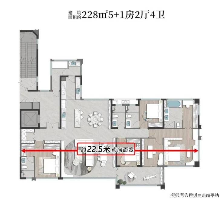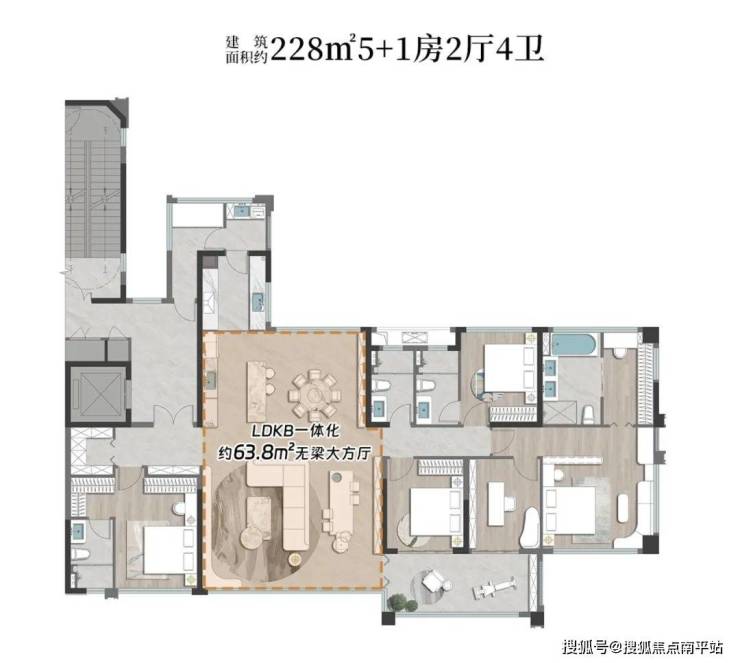 一座城市,澎湃人心的永远是城市中心;而顶级大平层,向来是城市中心的高端居住形态。联发·嘉和府越级改善大平层,一亮相便备受塔尖追捧,全部售罄。 如今趁势加推建筑面积约228㎡大平层,此款亦是诸多客户的关注爆款,是 目前市中心唯一在售的大平层户型,有着 双入户动线、总裁3套卧、三合一入户仪式感、约63.8㎡超大客厅以及深浅阳台等创新设计,5+1房配置足以满足三胎亲子+三代同堂等客群。话不多说,直接上图: