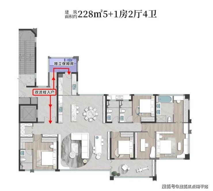 创新点1|双流线入户+独立保姆房