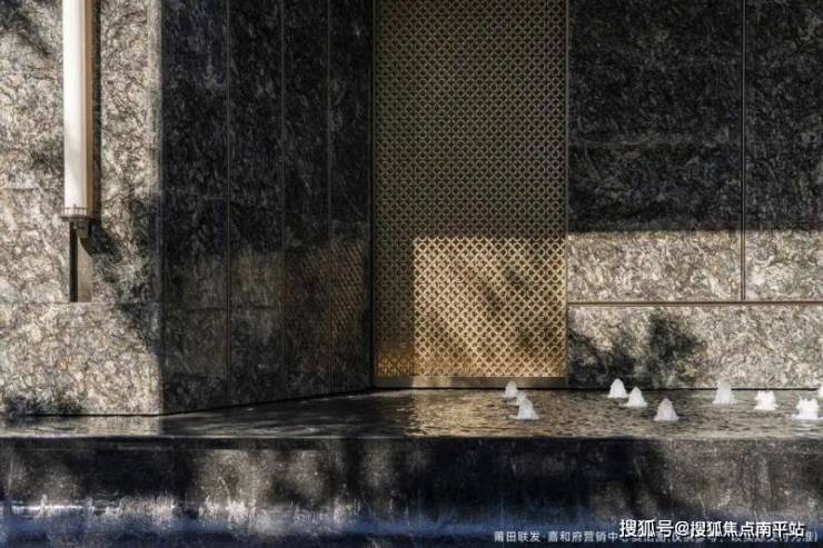 豪门仪式,由门开启。大门取意“北京恭王府”,约54米奢宅门面、约8.8米高度形成超长的迎宾界面,两侧铂金砖大理石+灵动流水,寓意“招财进宝”,尊贵门牌标识、横向展开的月季花雕,营造出既东方雅致又不失酒店仪式感的归家体验。