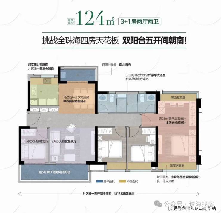 🩸【南北双阳台】约6.7米宽景阳台,约15.5米大面宽朝南,拥揽四季人生景致
