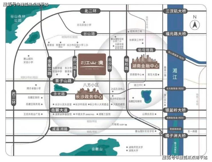 首先我们来看一下市府板块的基本面,项目坐拥茶子山路、观沙路城市主轴,链接岳麓大道,通贯河西河东,地理位置可以说是“众星捧月”。
