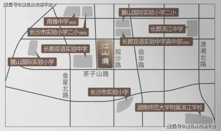 而招商蛇口江山境项目距离在建的长郡双语高中部仅一路之隔,距离长郡双语本部只有约80米的直线距离,此外还毗邻麓山国际实验第二小学、规划中的南雅中学等。(具体学区划分以教育部门最终公示为准)
