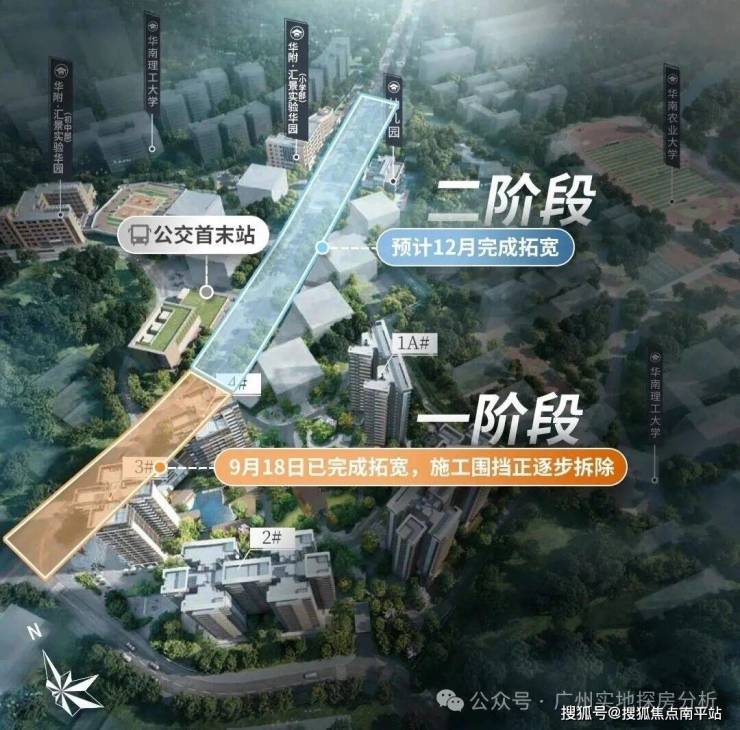 自驾华南快速干线和广园东快速干线、北环高速公路,项目门口东莞庄路道路拓宽已经进入施工阶段,从双车道改为四车道。
