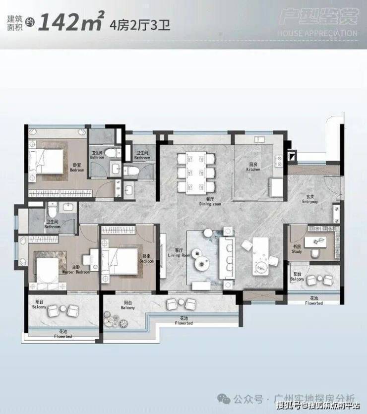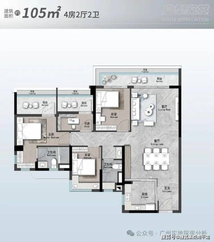 项目共分五期开发,一期5栋都是16/17层,4号楼和3号楼是去年的户型,使用率低一些,也比较靠近路边。现在主要卖1号楼和2号楼,今年新推出的户型,不靠近路边,比较安静,而且使用率105%。