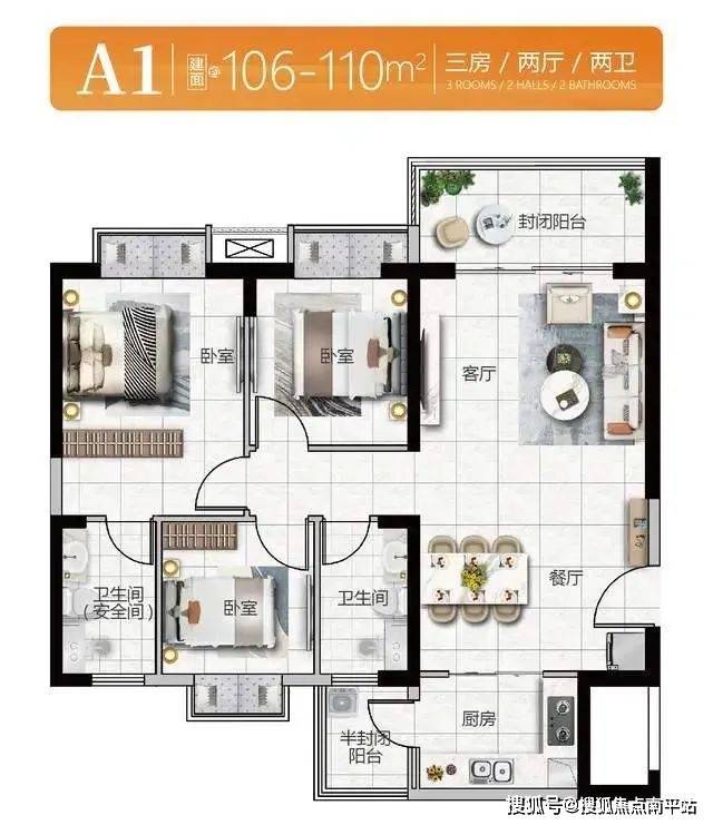 户 型:73㎡两房、86~110㎡三房