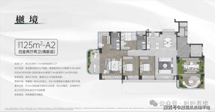 三个面积段的产品信息,为凸显四代宅的核心差异价值,将露台拆开分户介绍,拥有超高的露台赠送~