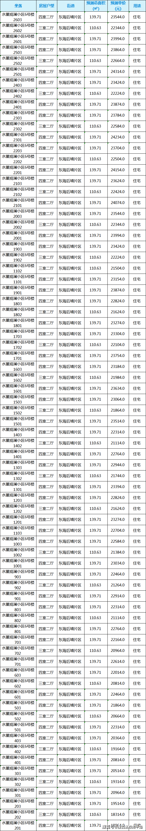 房价表