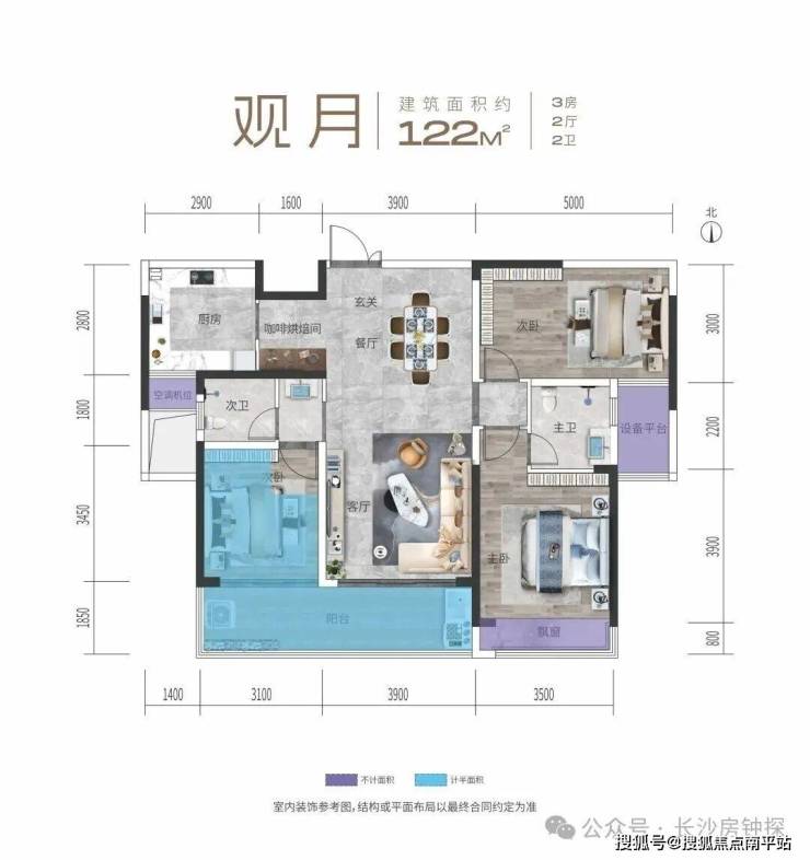 - 建面约122㎡(3房2厅2卫):得房率约96.7%,比肩140㎡+户型。10.5米南向3面宽,7米面宽观景阳台,31㎡全景家庭聚厅,24㎡主卧套房,空间开阔,满足三口之家或三代同堂需求。