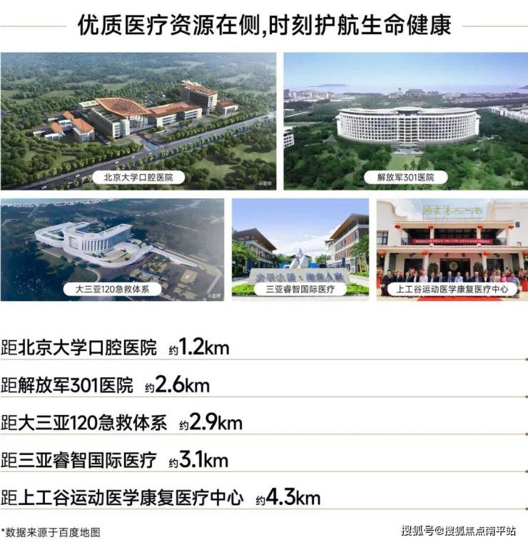解放军301总院海南分院、北大口腔医院、赫尔曼运动康复医院、上工谷运动医疗康复中心等,业主享全维度医疗资源环伺,为健康筑起安心屏障。