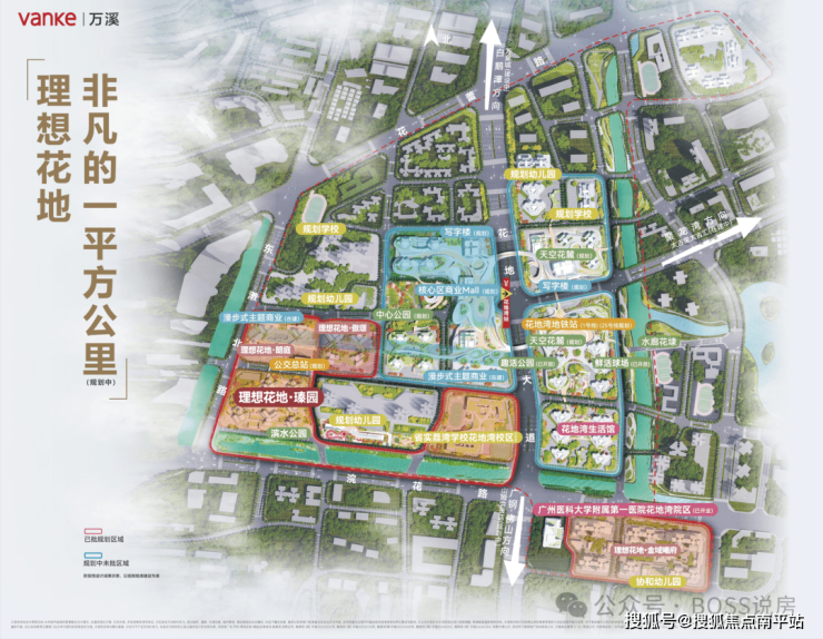 万科理想花地·臻园是万科广信资产包的一部分,总占地1平方公里,连片开发比广钢新城还要大,片区中包含了6所幼儿园,和5所中小学,规模之大。