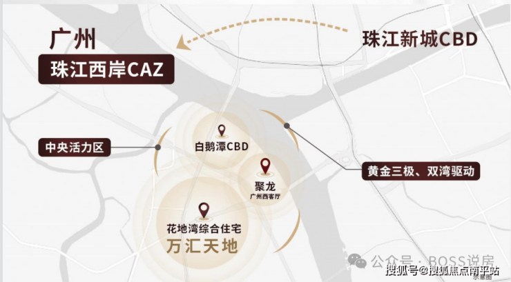 目前荔湾的白鹅潭核心区、聚龙组团、花地湾组团形成黄金三极格局,分别侧重于“产” “商” “居”,促进人城产深度融合,重新打造广州城市副中心。
