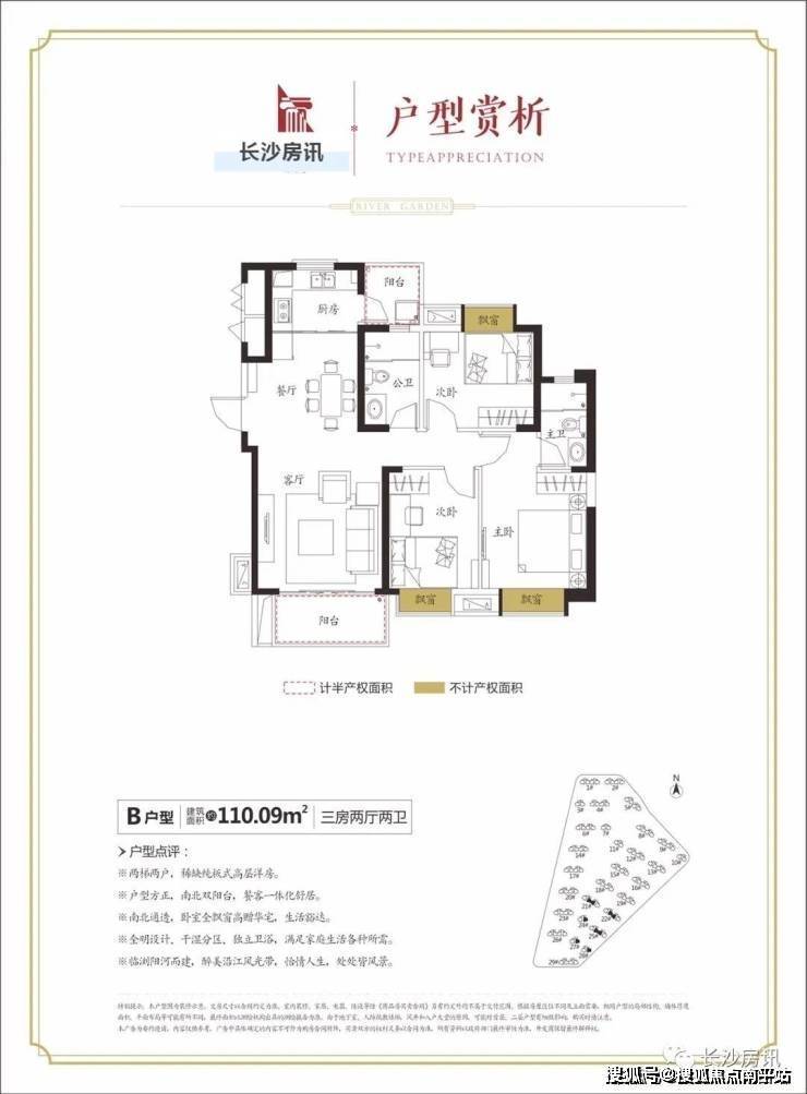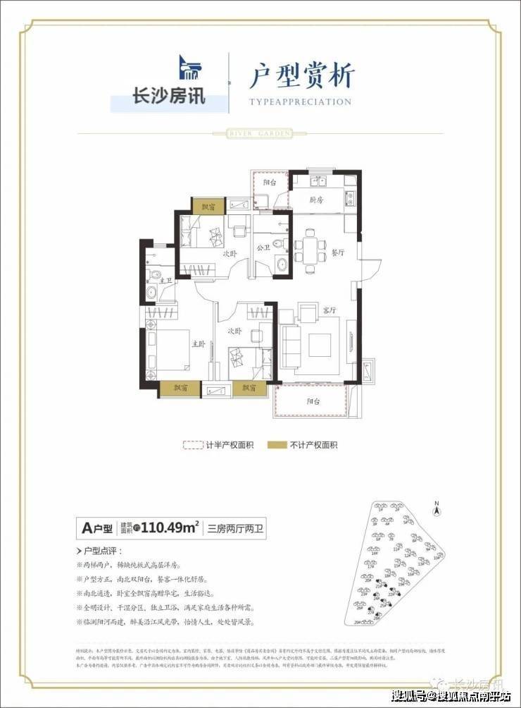 51万⽅全板楼滨河⼤盘,110平⽶三房纯板式设计,南北通透,双阳台设计,阳光和轻风⾃由进⼊厅堂。