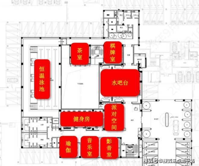 据悉,项目将打造约1700㎡超配感下沉会所,具备12大功能,包含健身房、瑜伽室、音乐室、PARTY ROOM(有KTV、桌球)、茶室、影音室等多元互动场景,并且配置了泳池