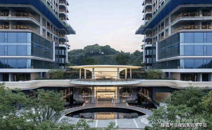 5、下沉配套:在中心部位形成采光井的下沉内庭,形成中央园林会客厅的上下层次感。打造无边界泳池+健身房+台地花园+山体公园,形成以泳池为“综合体”的生活方式中心。