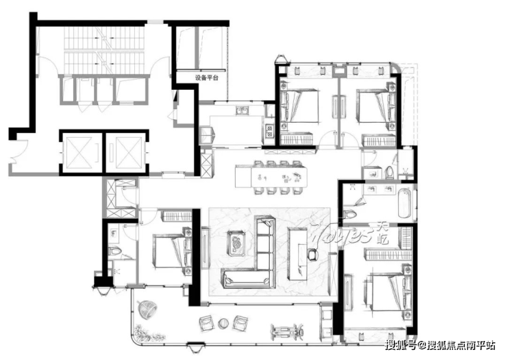 户型选择,220㎡、245㎡、255㎡、285㎡、315㎡的精装江景大平层。