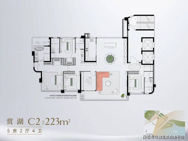 C1 阅湖与 C2 赏湖 223㎡户型,精准击中改善天花板需求 ,以 “五开间瞰湖 + 可定制 4-5 房” ,平衡家族团圆与私密空间, 综合使用率约104% +赠送约27㎡ ,让整个户型发挥出超越常规的实用价值!