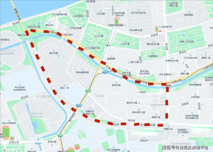 虽一桥南板块开发很早,2000年左右就开始拆迁,进入商品房开发,但地块所在位置距离钱塘江还有大概七八百米距离(有蛮多土著其实挺看重与江的距离),同时周围没有什么配套,距离地铁站也比较远,微区位看,还差点意思。