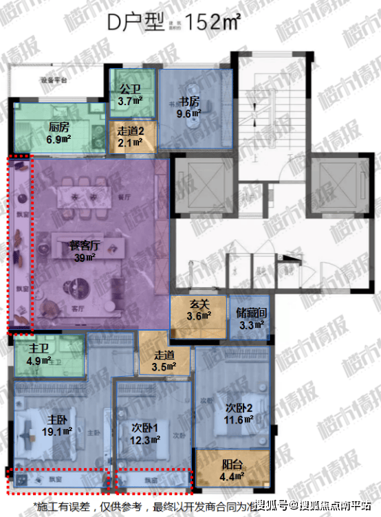 同时,较为遗憾的是,建发璞云的所有户型的阳台都偏小。152㎡户型阳台面积却只有4.4㎡。
