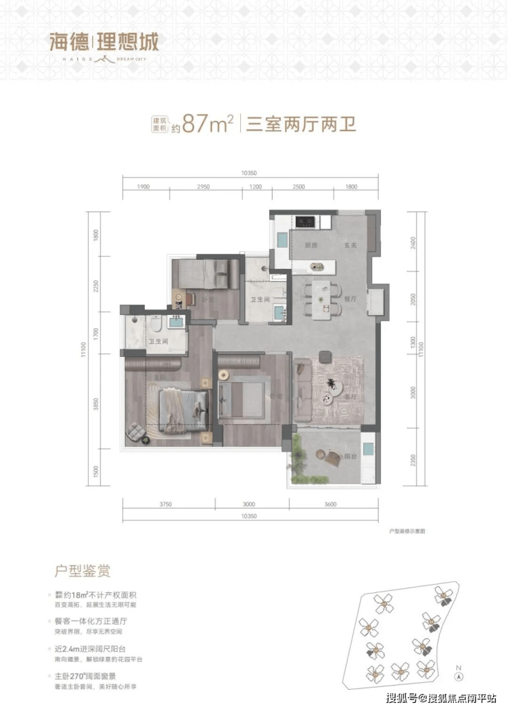 建筑面积约87平方米三房,年轻人的城芯生活优选