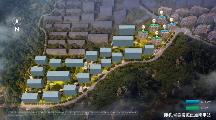 这个项目 拿地条件的容积率仅1.3,这种低密土地本就稀贵无比, 再依托原生地势,所有楼栋都是沿坡地和景观轴线错落排布,在实现无遮挡观山视野的同时,也保障了更优的日照时长。