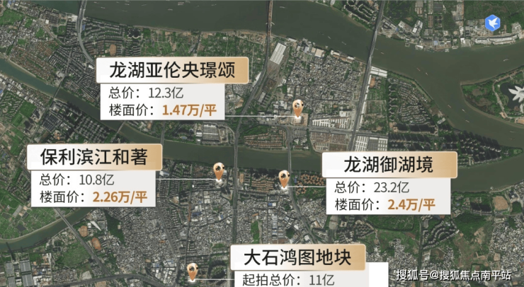 3、起拍价不高,总价11亿元,名义起拍楼面价约1.43万/㎡;目前板块内的保利滨江和著(大石新光西地块)、龙湖亚伦御湖境(大石迎宾路地块),楼面价都去到2万+/平,鸿图地块要便宜太多了;