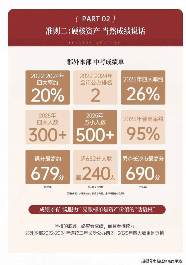 教育 :配套入读长郡外国语实验中学本部及附属小学,学校教学质量高,中考成绩稳居长沙公办初中前列。