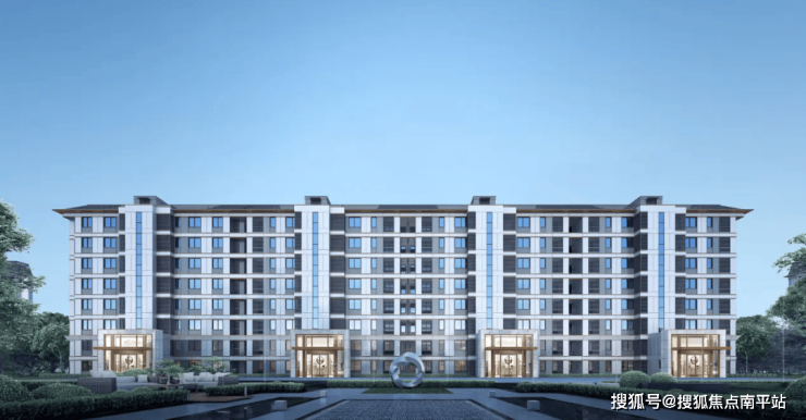 不止于此,中建对于北立面的规格也毫不放松,上有中式挑檐,下有迎宾感极强的入户大堂。