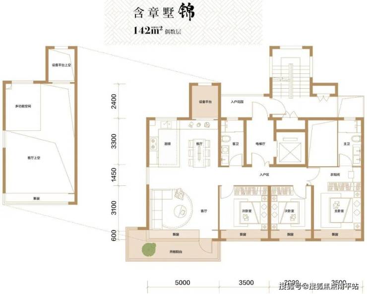 高厅平墅为6、7、9层建筑,户型为建筑面积 约142㎡、168㎡三室(不含首顶)。