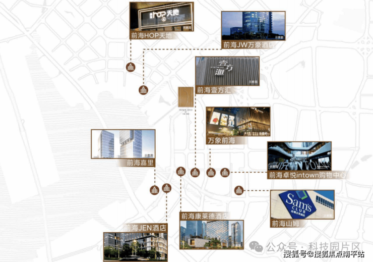 步行1公里可达山姆会员旗舰店,1.6公里至华润前海万象城,1.2公里到龙海商业广场。自驾10-15分钟可达宝中壹方城。周边还有前海壹方汇、卓越INTOWN等商业体环绕。