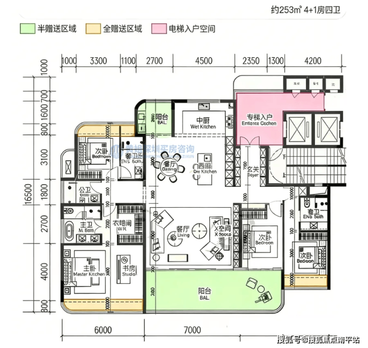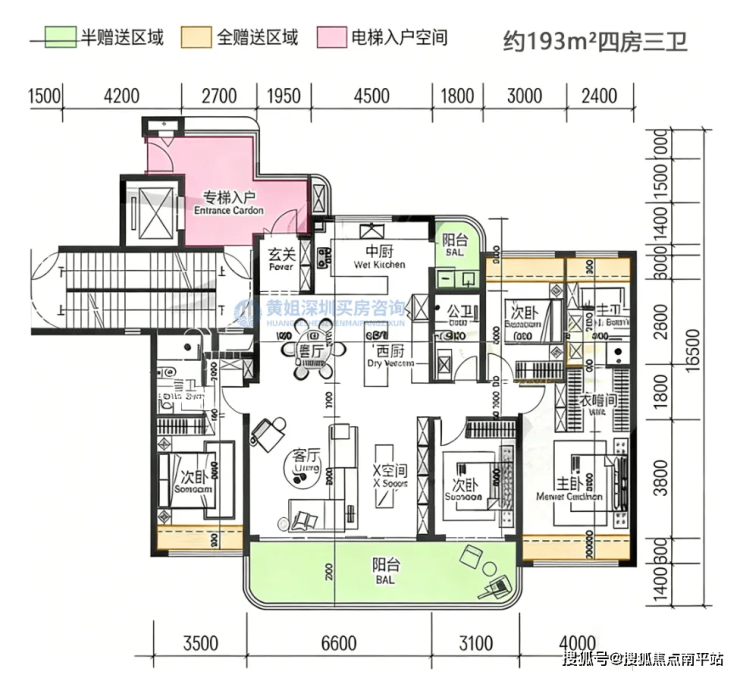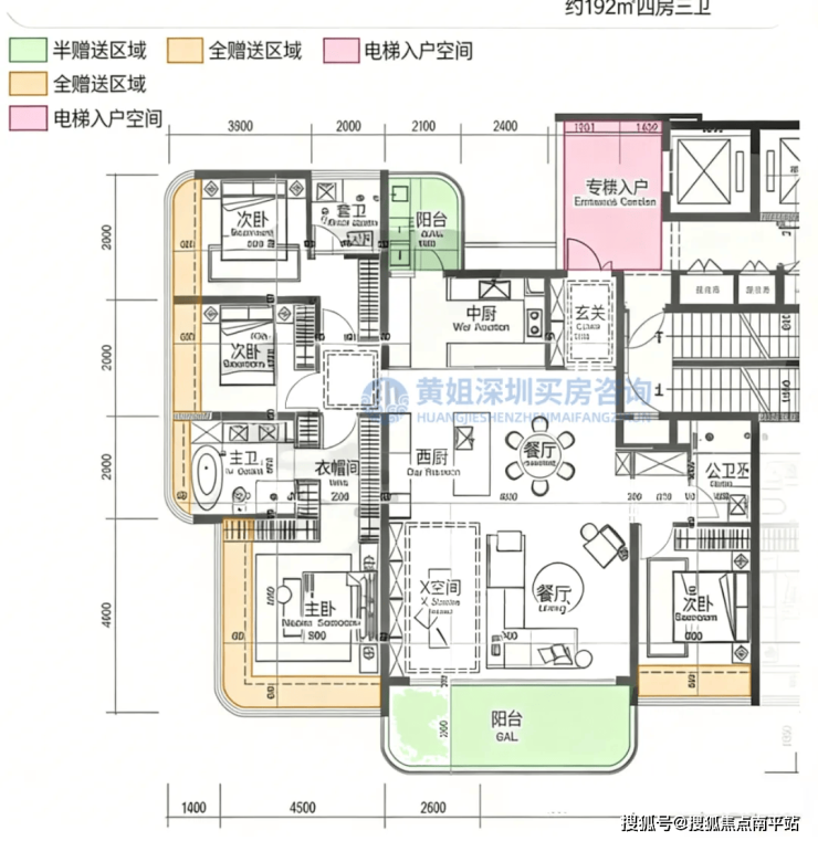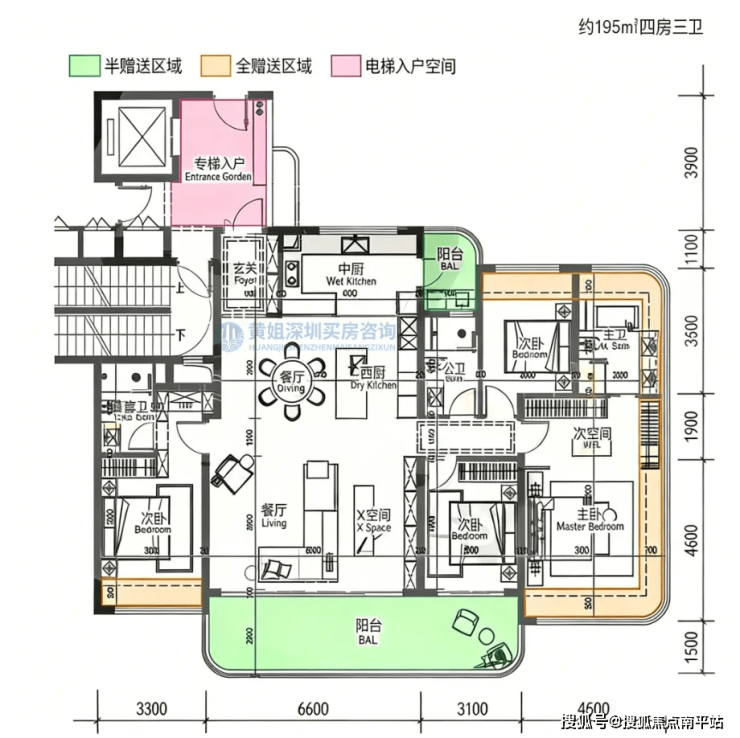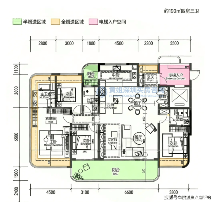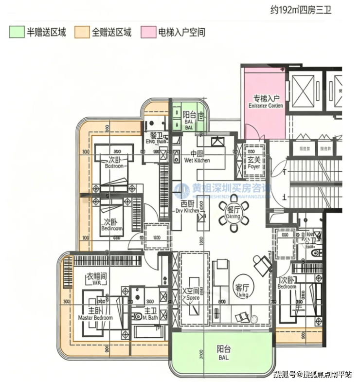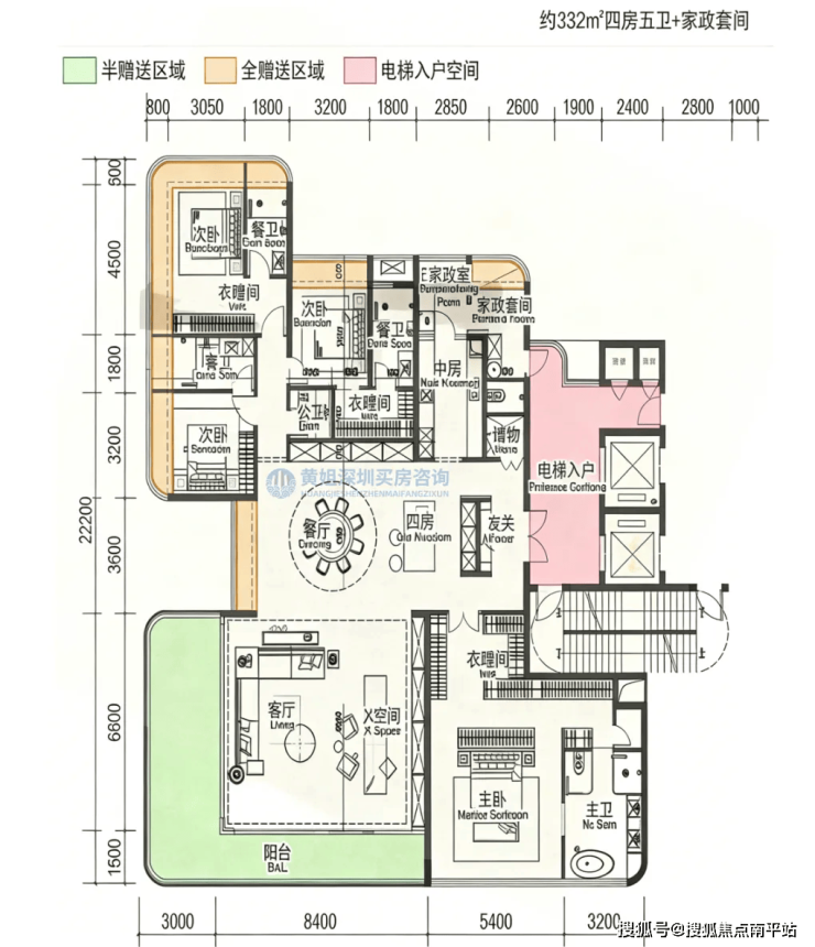 朝向以东南/西南为主,部分单元可将前海湾、摩天轮及城市天际线纳入视野,既兼顾家庭居住的温馨实用性,又能享受顶豪级景观体验,适配三代同堂高端改善需求。
