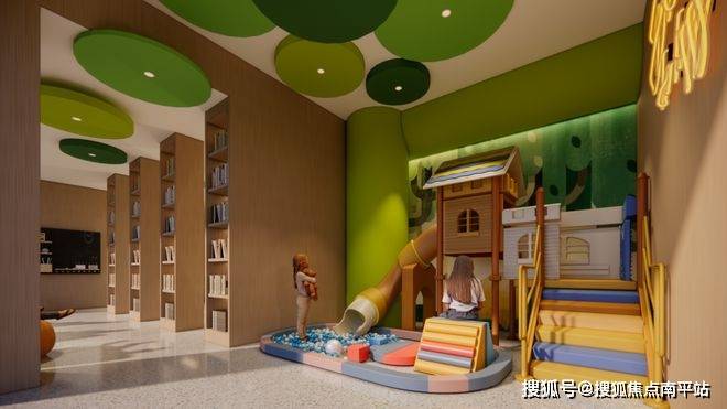 北侧4栋住宅一层架空做成业主公共活动空间,面积足足有约1400㎡,在下沉庭院侧面的架空平台下方,也会有一个约130㎡的公共活动空间。若再加上图书馆主题的归家大堂,那么,这些面向业主的公共活动空间面积就能达到约1800㎡。