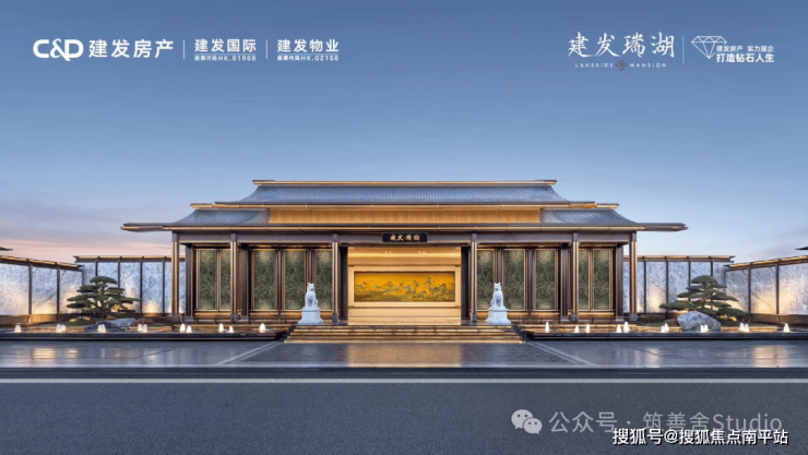 建发千万级项目,大美新中式示范区,中式大门+下沉庭院+高定会所+别墅户型 | 金山建发瑞湖