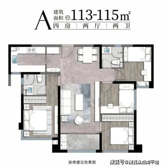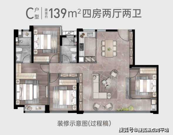 户型方面,114平户型五开间朝南,做4房;134平四房户型,约13.7米南向开间,客餐厅30多平。
