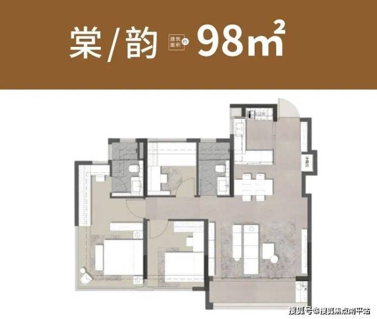 建面约98㎡:约5.3米大面宽客厅,次卧约3.1米面宽领先市场;酒店式主卧套房带270°飘窗环幕采光,转角衣帽间。