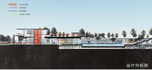 项目从社区常见痛点着手,在“中央车站”的基础上,结合无界理念、基地地形高差做了二次创新,打造专属的“无界车站”。它是整个社区的主出入口与社区会所服务的综合体,也将成为社区生活和城市公共生活相互交融的窗口。