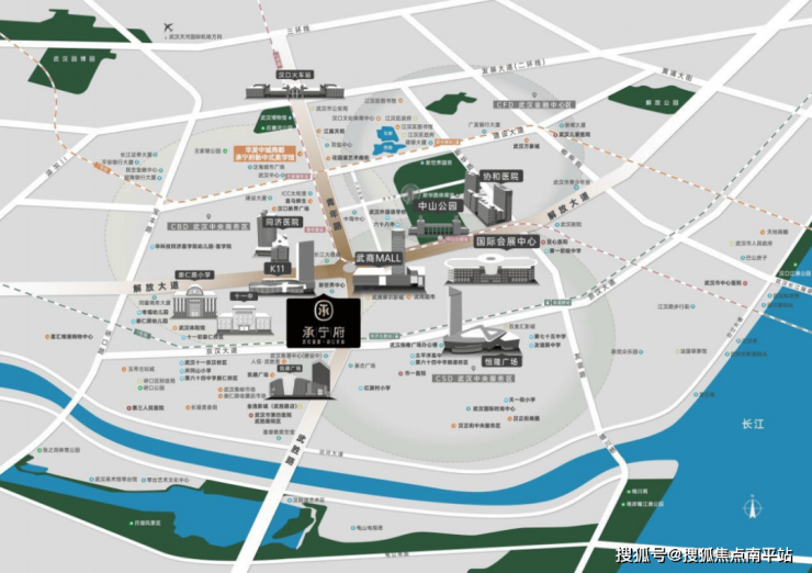 承宁府,雄踞汉口内环地理正心,傍依航空路枢纽转盘,紧邻地铁 1 号线利济北路站,解放大道、京汉大道双动脉在此交织。