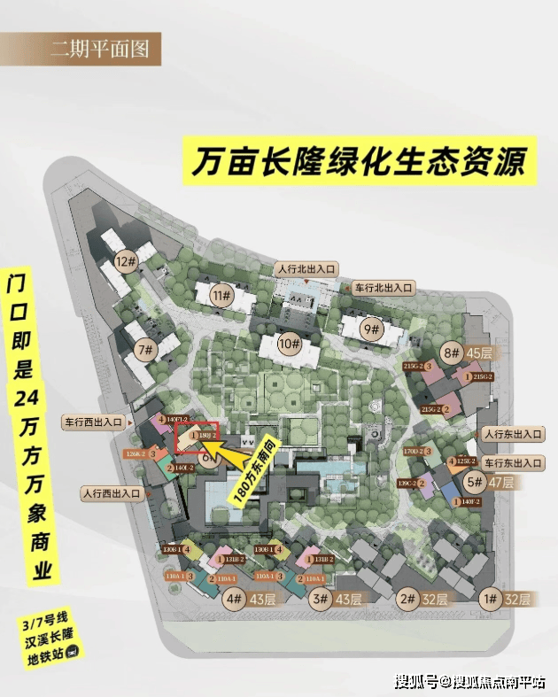 二期距离地铁3/7号线汉溪长隆站就更近了,下楼就是地铁口