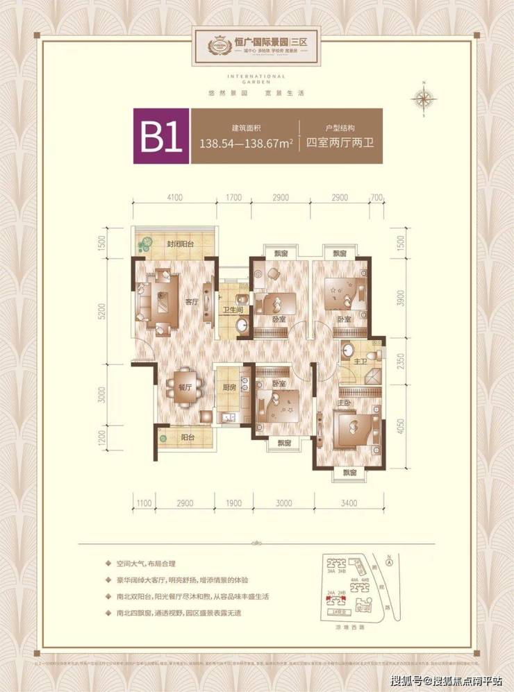 全龄段多重立体园林景观,每个年龄段,都可找到自己的舒适区,且整体围合式布局,中央园林大景观,户户推窗见景。