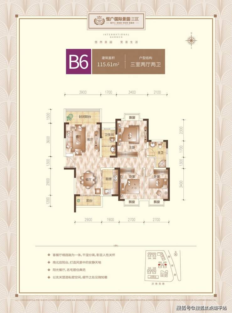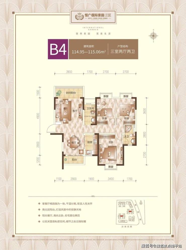 在售面积 :107-109-115平米三房,138㎡四房