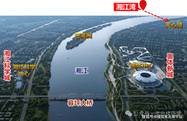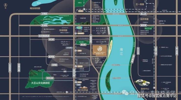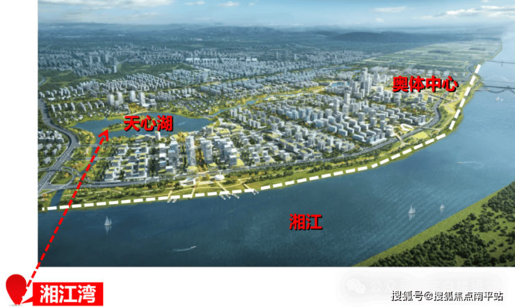 尤以对岸奥体新城为核心,在湘江湾楼栋偏移的视角下,正对奥体新城规划的天心湖,湖水通过小河汇入湘江,直冲湘江湾区域。风藏气、水为财,湘江湾,迎南来之风、纳南来之水,真正的福盘、富盘、宝盘。