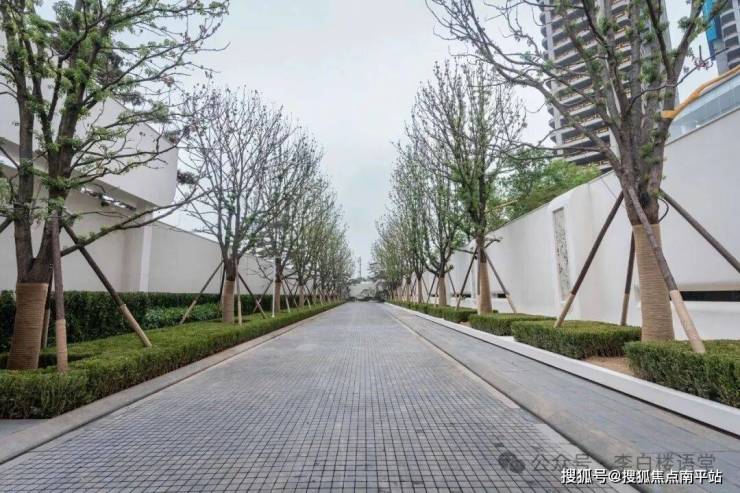如主入口邻道路一侧,种了11株迎宾松阵,让归家尊崇仪式感从靠近社区的第一步就得以彰显。